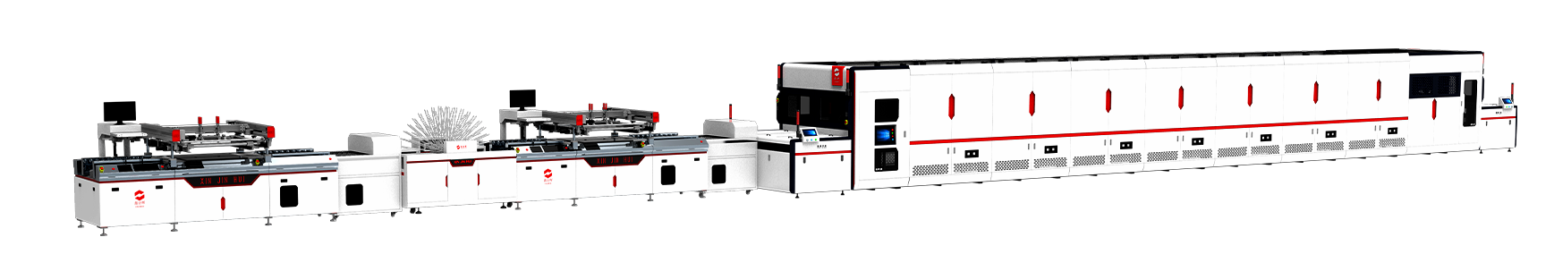 全自動特大板阻焊絲印烘干生產線解決方案,主要由特大尺寸pcb板,智能油墨樹脂塞孔機、自動阻焊絲網印刷機、阻焊預烤絲印烘干懸吊式隧道爐組成,實現3道工藝制程全自動生產,可節(jié)省人工6-8人,分鐘產能高達3~5片,節(jié)能省電智能高效。